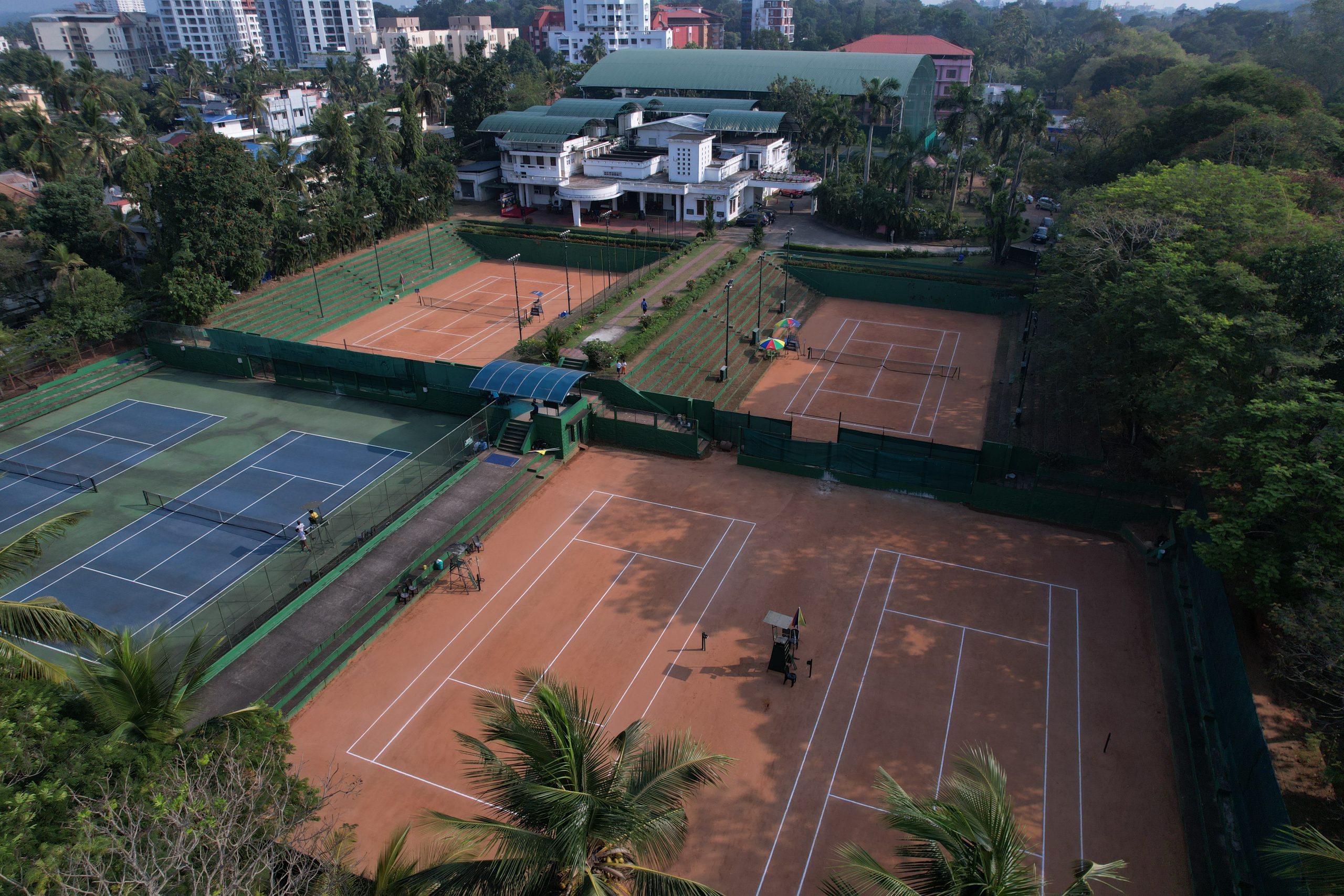 Trivandrum Tennis Club (TTC) is one of the finest tennis clubs in India. It has nine courts, four of which are clay courts and five are synthetic hard courts. Three of the synthetic courts are roofed and lighted. The Club’s show court, court no 1, is clay and has flood lights. The overall infrastructure is world class, and it is a matter of pride that the TTC complex has, over the years, played host to several international and national tennis events.